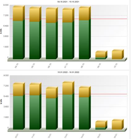 安裝前后一周的每日能耗